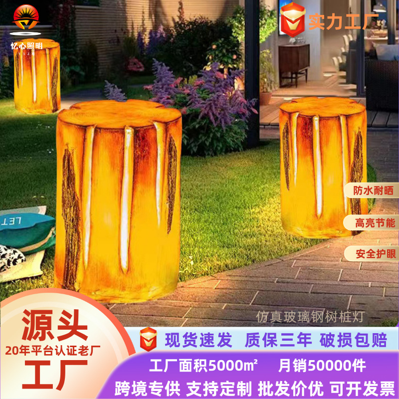 Lampu Tunggul Pohon Simulasi LED Lampu Tumpukan Kayu Lampu Taman Surya Lampu Taman Luar Ruangan Tahan Air Lampu Taman Rumput Villa