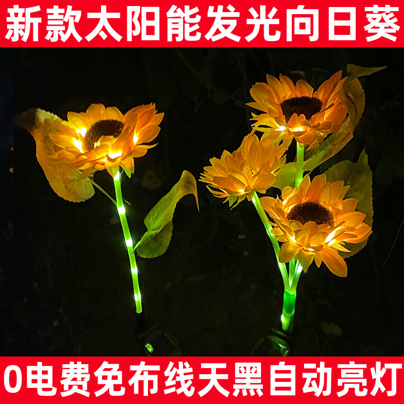 Pabrik langsung simulasi lentera surya LED tunggal tiga kepala bunga matahari lentera luar ruangan rumput lampu tanah