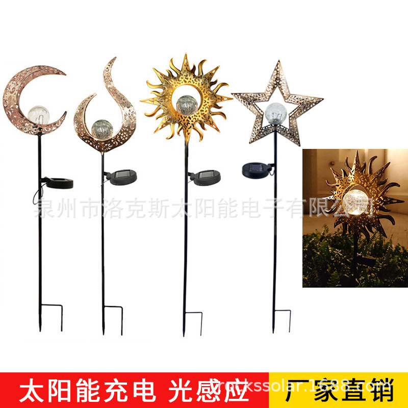 Amazon lampu taman panas lampu surya led lampu rumput besi tempa nyala matahari bintang lima sudut lampu
