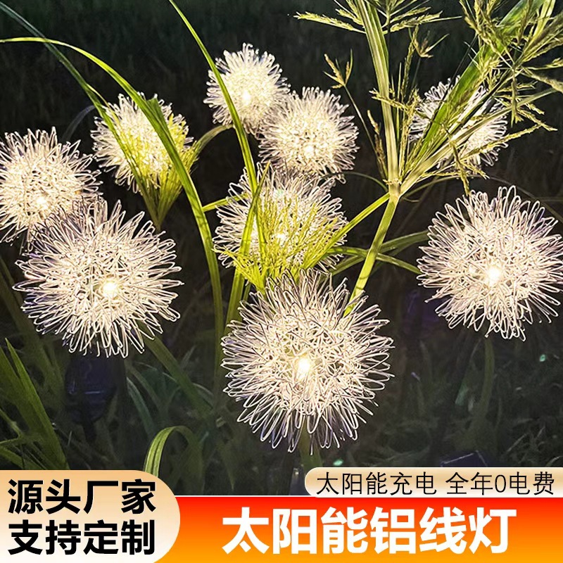 Pasokan pabrik led aluminium surya bola kawat lampu dandelion luar ruangan dekorasi Vila halaman lampu Tanah lampu rumput