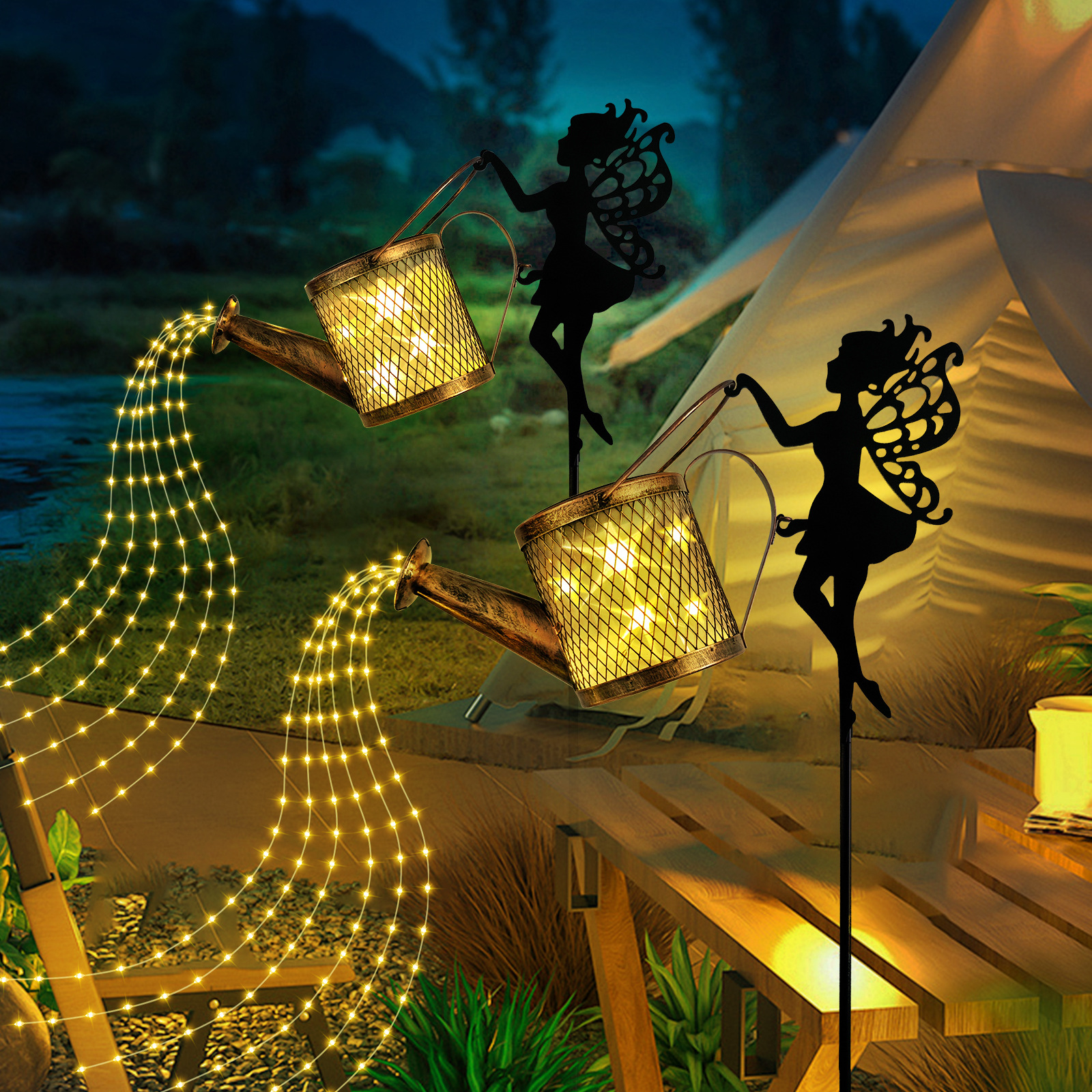 2025 Lampu Ketel Air Malaikat Halaman Surya Lintas Batas Lampu Lantern Luar Ruangan Seni Besi Lampu Rumput Berongga Bunga Air Peri
