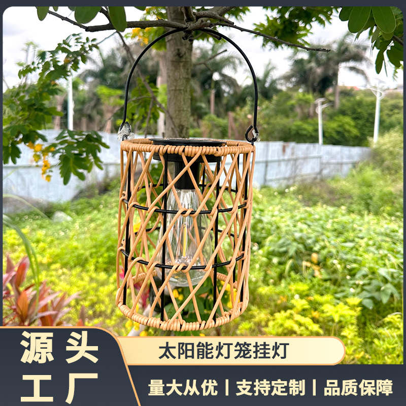 Lampu Tenaga Surya Lintas Batas Luar Ruangan Rotan Bambu Jinjing Lampu Gantung Dekorasi Halaman Gaya Tiongkok Retro Lentera Taman