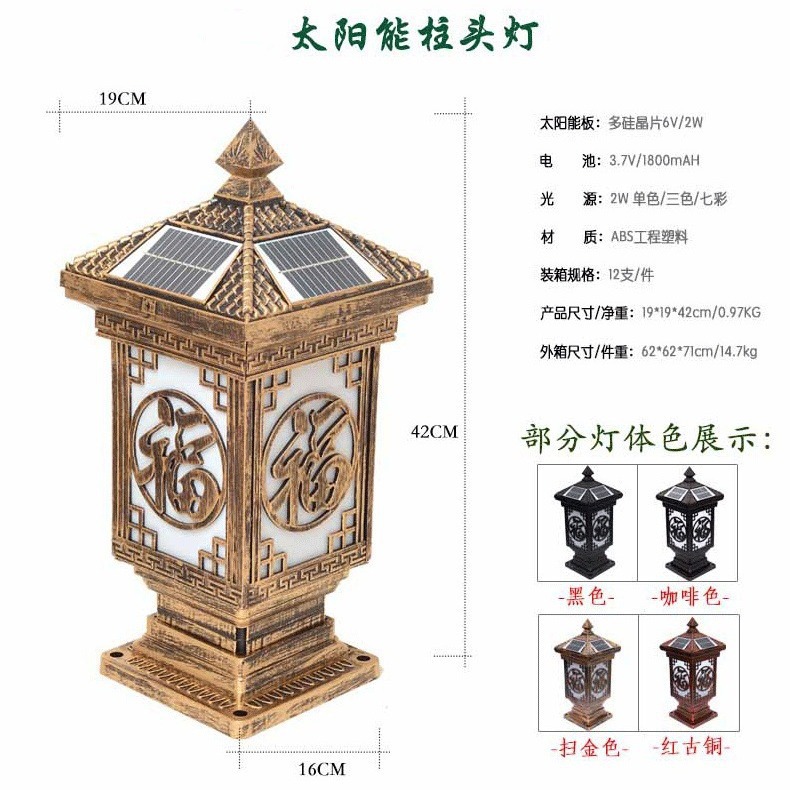 Lampu Kepala Surya Luar Ruangan Tahan Air Berkata Fu Lampu Dinding Halaman Rumah Balkon Villa Pilar Pintu Besar