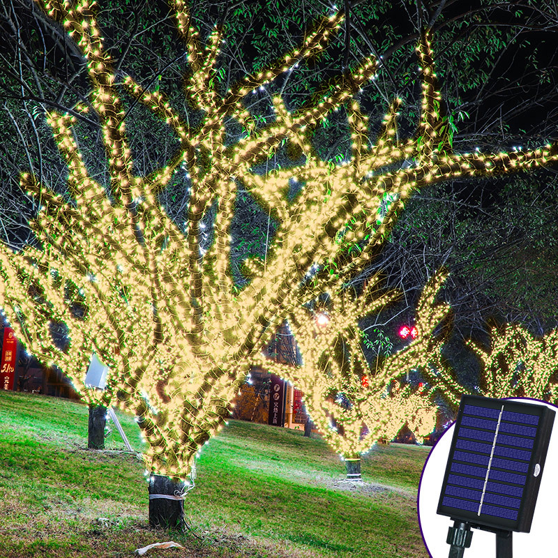 Lampu Kawat Surya LED Tenda Langit Tahan Air Tekanan Rendah Luar Ruangan Lampu Hias Taman Pohon Kawat Lampu Kawat Kulit Lembut