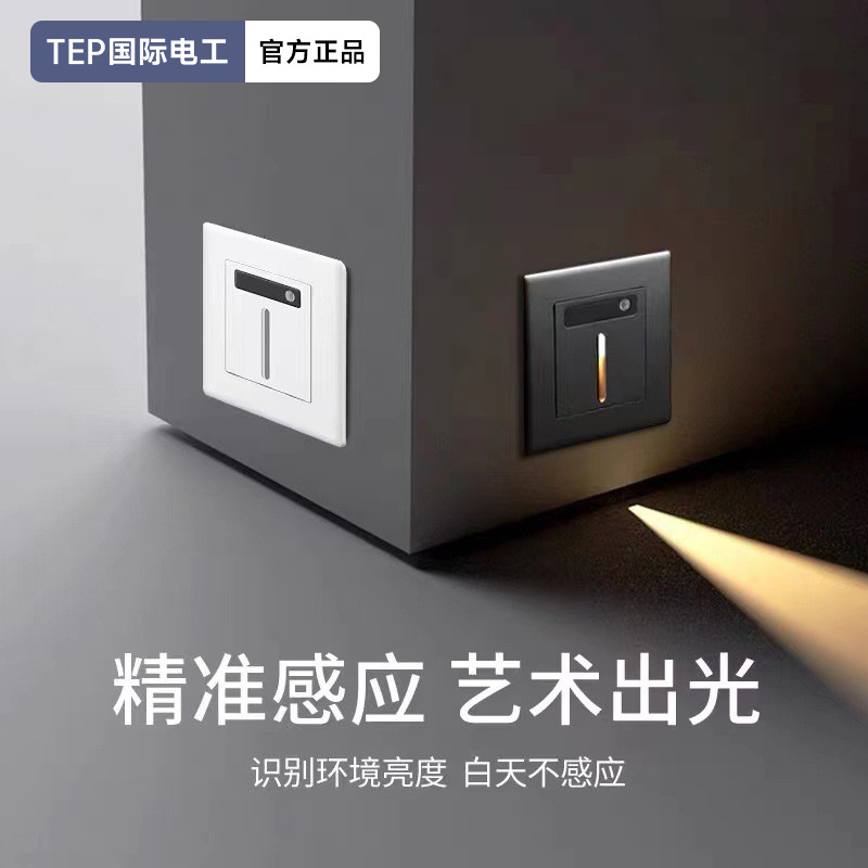 Lampu malam LED tertanam tipe TEP86 untuk koridor, tangga, dan anak tangga, lampu kaki sensor tubuh manusia inframerah rumah tangga.