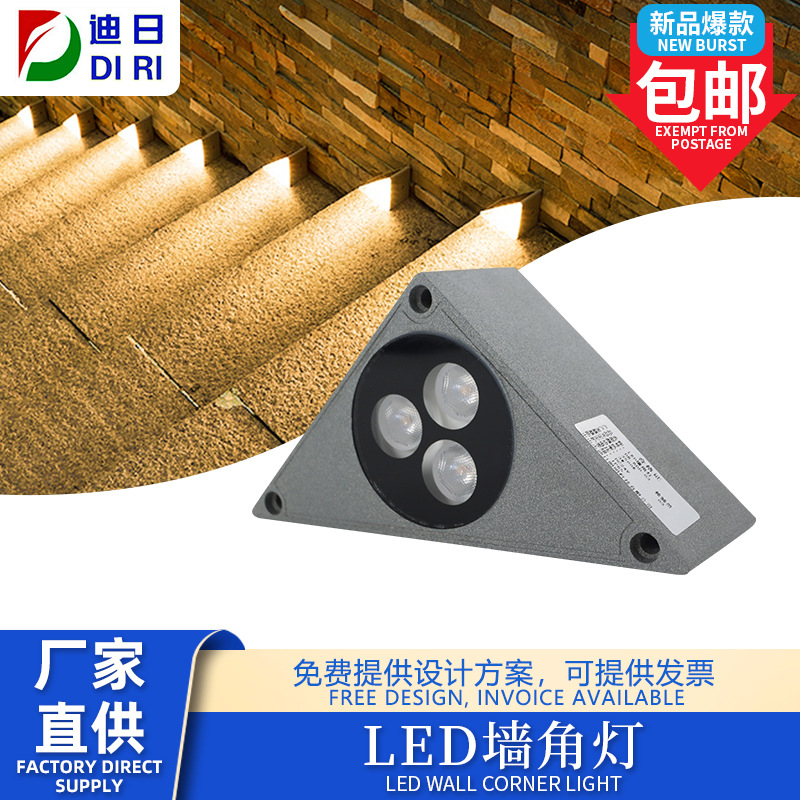 LED3w lampu sudut tangga, lampu langkah segitiga tahan air lampu sudut dinding samping