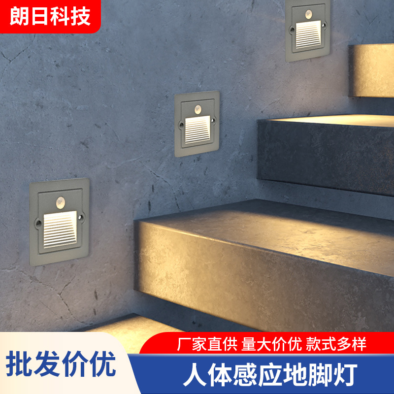 Lampu Kaki Cerdas Sensasi Tubuh Manusia Tertanam Tangga Persegi Ruang Tamu Luar Ruangan Lampu Sudut Dinding Tahan Air Lampu Langkah