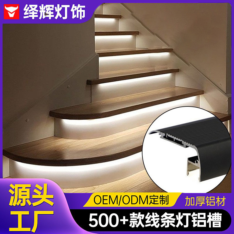 Lampu tangga led step light aluminium linear tanam anak tangga slot cahaya Internet selebriti tangga hitam tersembunyi