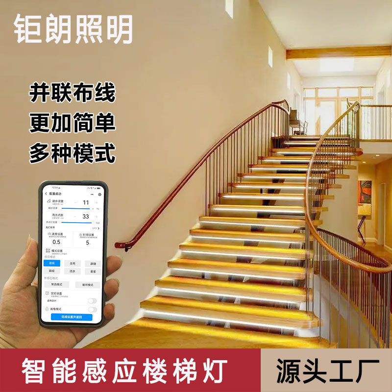 Lampu tangga cerdas, lampu tangga, lampu langkah induksi cerdas, lampu air kuda, lampu tangga sandaran tangan lari dengan pengontrol