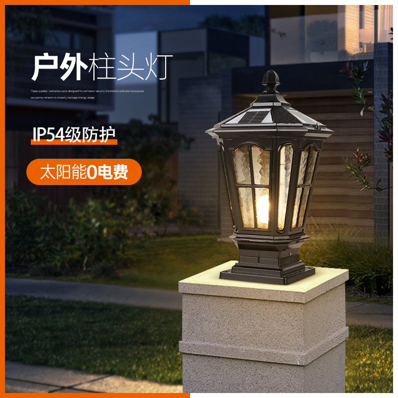 Lampu pilar tenaga surya luar ruangan tahan air, lampu dinding pintu dinding taman rumah Vila lampu pilar pintu Tiongkok