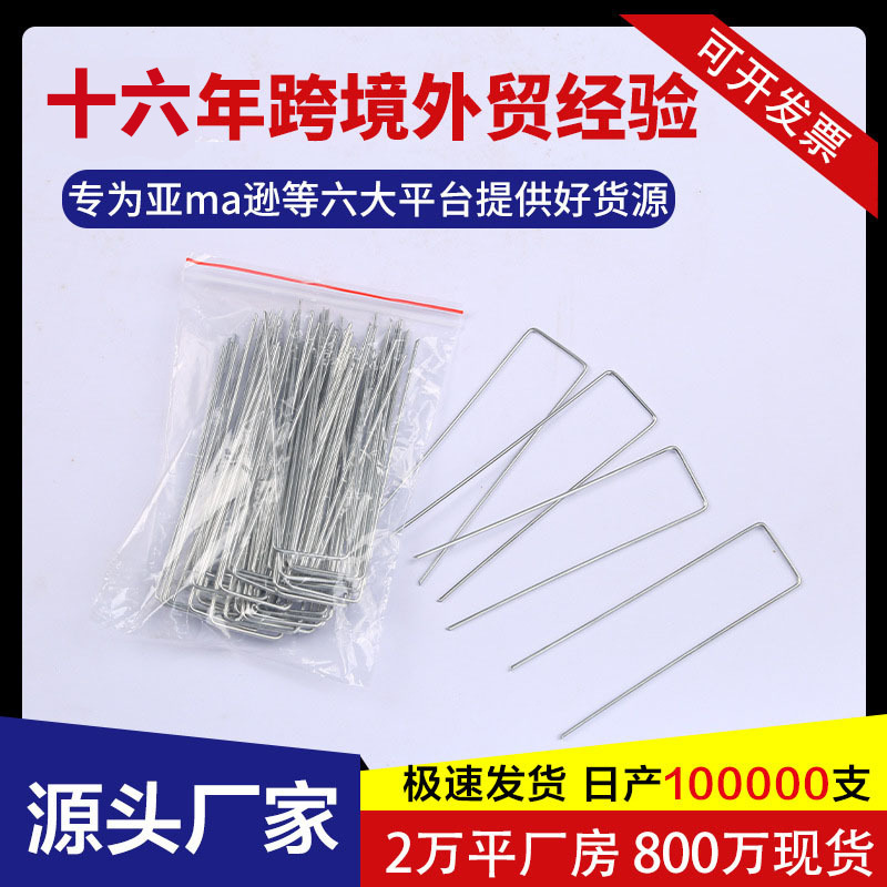 Pasokan pabrik kain anti rumput tetap berbentuk U kuku tanah grosir kain tanah berkebun galvanis kuku tanah rumput luar ruangan