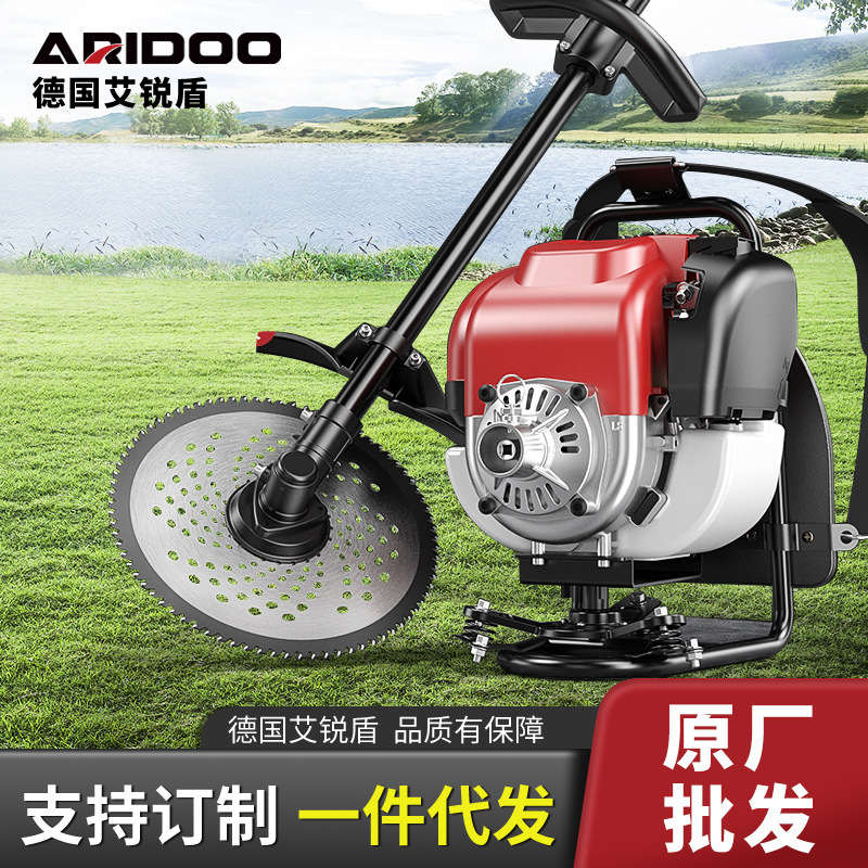 Mesin pemotong rumput ransel multifungsi, penyiang gulma bertenaga bensin untuk pertanian, pembersihan lahan rumah tangga, penggembur tanah, mesin pemotong rumput.