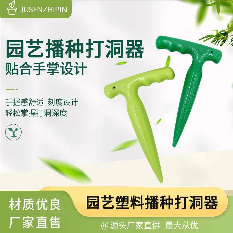 Lubang Puncher biji tanaman plastik, alat berkebun bibit pukulan pegangan panjang lubang penggali bibit