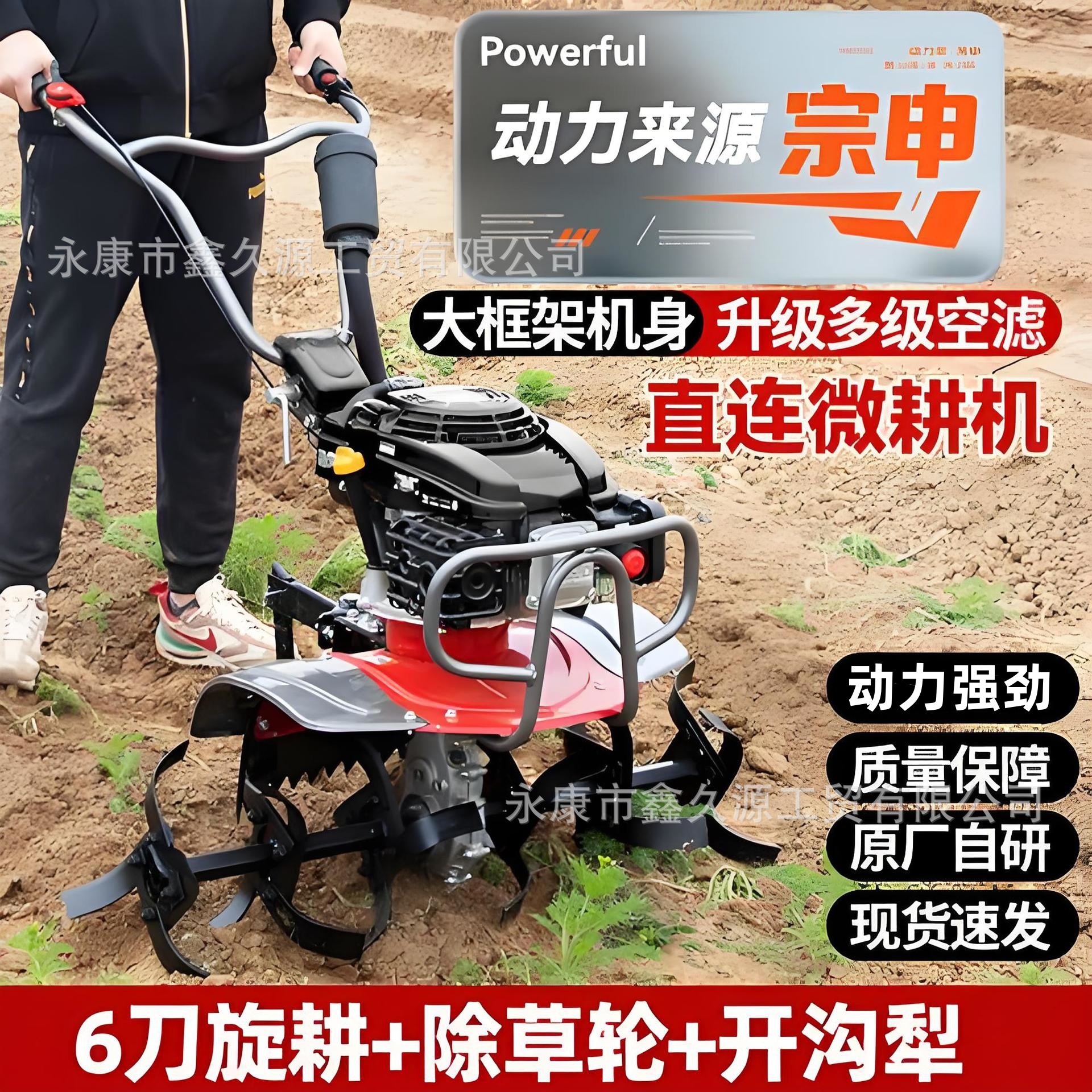 Mesin Zongshen empat langkah, micro-tiller, rotary tiller bensin pertanian kecil untuk penggunaan rumah tangga, penyiangan, penggemburan tanah, pembuatan parit, dan pembalikan tanah.