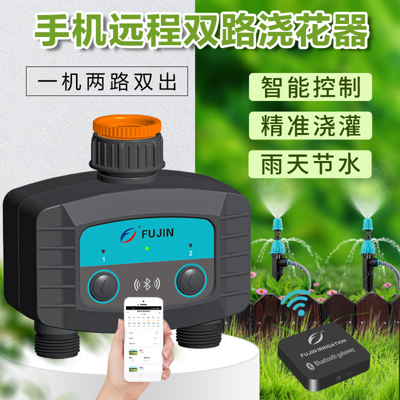 Artefak penyiraman otomatis dual-channel water outlet wifi Bluetooth pengendali jarak jauh dua saluran acak waktu cerdas pengairan perangkat