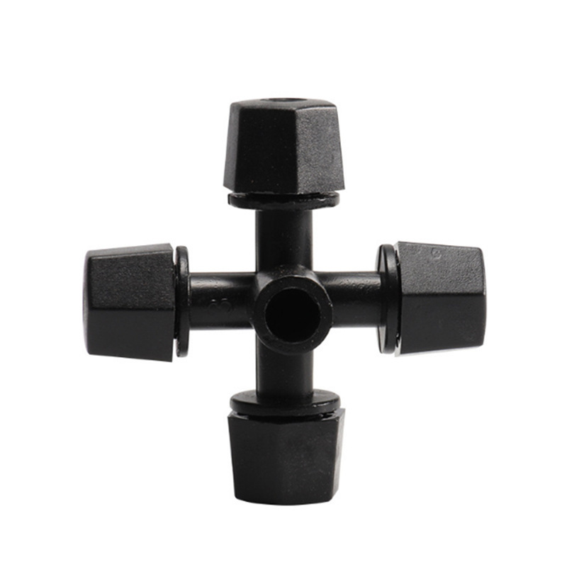 Semprotan atomisasi lintas batas, nosel empat arah 6mm abu-abu hitam, semprotan pelembap pendingin penghijauan taman