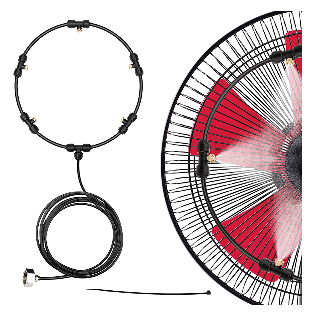Kipas semprot sistem penghilang debu, semprotan cincin pendingin, penghilang debu, sistem semprot tekanan rendah luar ruangan