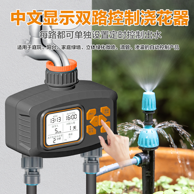 Alat Pengontrol Penyiram Air Cerdas Layar Besar Pintu Keluar Ganda Alat Penyiram Otomatis Sistem Penyiram Taman Balkon