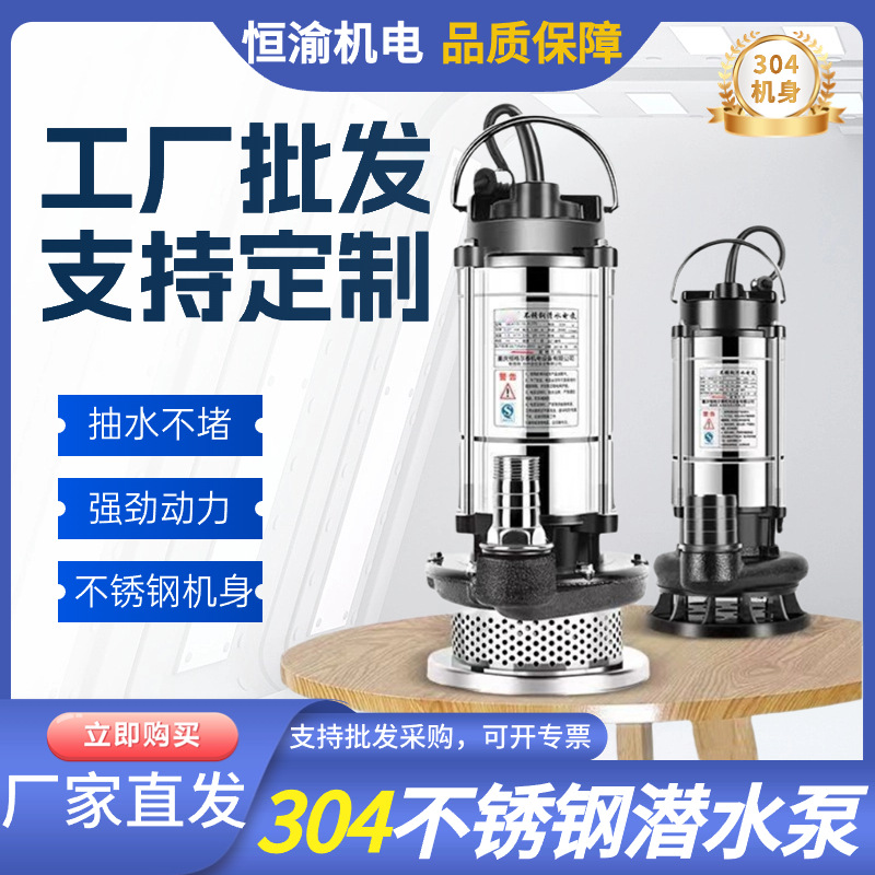 QDX pompa submersible baja tahan karat 220V, pompa limbah kecil rumah tangga, pompa pertanian, mesin pompa angkat tinggi