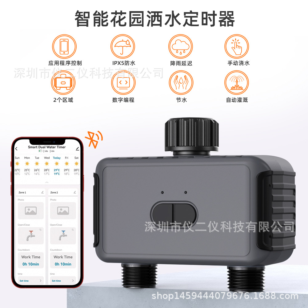 Pengontrol irigasi Bluetooth Cerdas WIFI, alat menyiram otomatis halaman rumput berkebun pengaturan waktu dual outlet