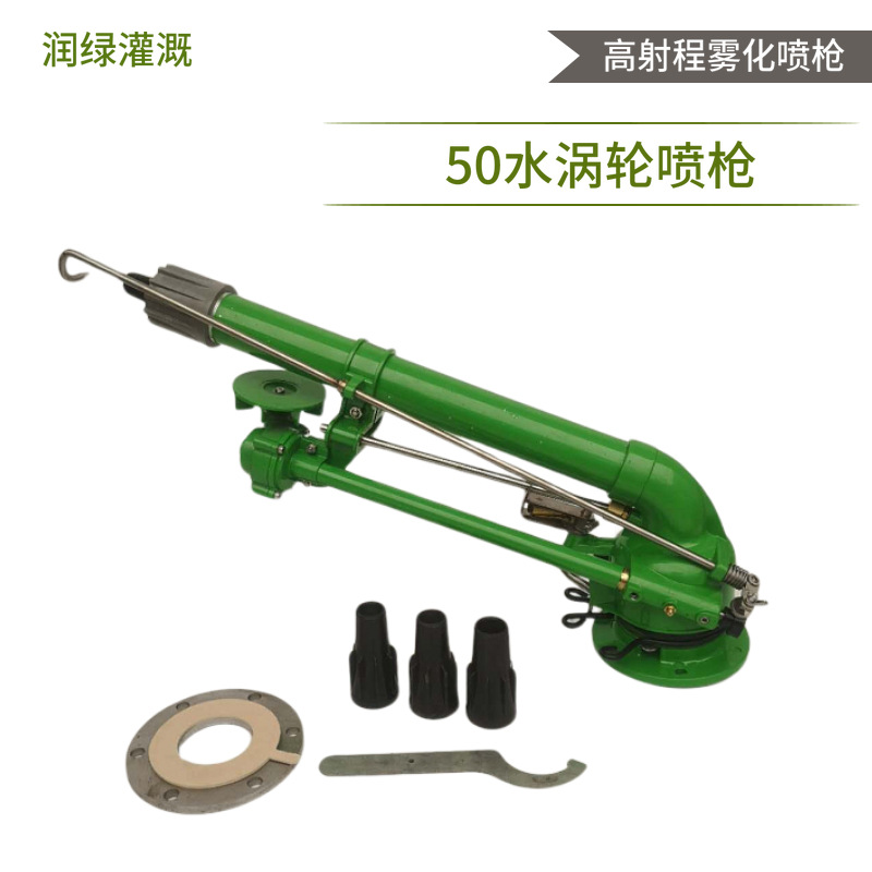 Farmland pistol semprot, irigasi 50, pistol semprot cacing turbin cocok untuk irigasi industri pertanian, pistol semprot sudut elevasi penghilang debu