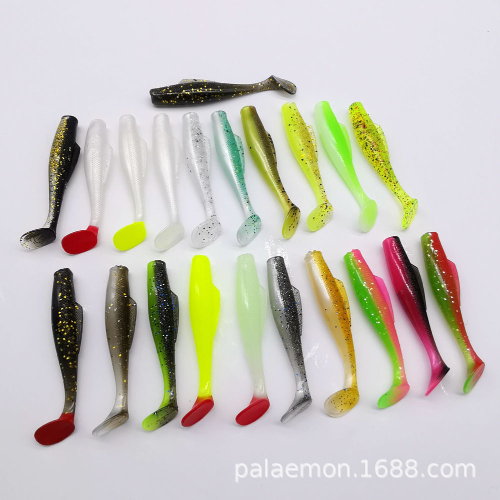 Umpan umpan Luya bahan TPE dua warna T ekor kotak ikan kecil lembut 5.5 cm1,8 G, Pak 18.5g