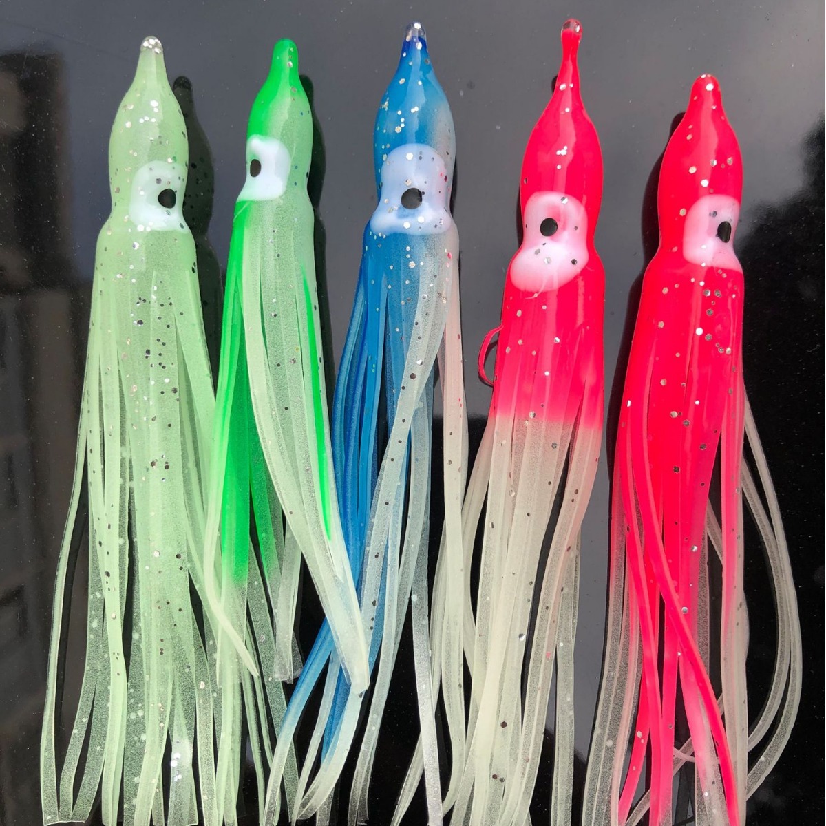 Umpan pancing cumi-cumi, tiruan bercahaya merah biru hijau dua warna memancing di laut peralatan memancing ikan laut umpan pancing