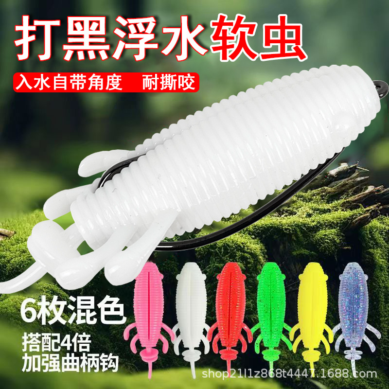 Luya grosir umpan lembut umpan palsu hitam mengambang lembut cacing petir cacing 8cm/13g ikan hitam membunuh kait crank umpan Luya