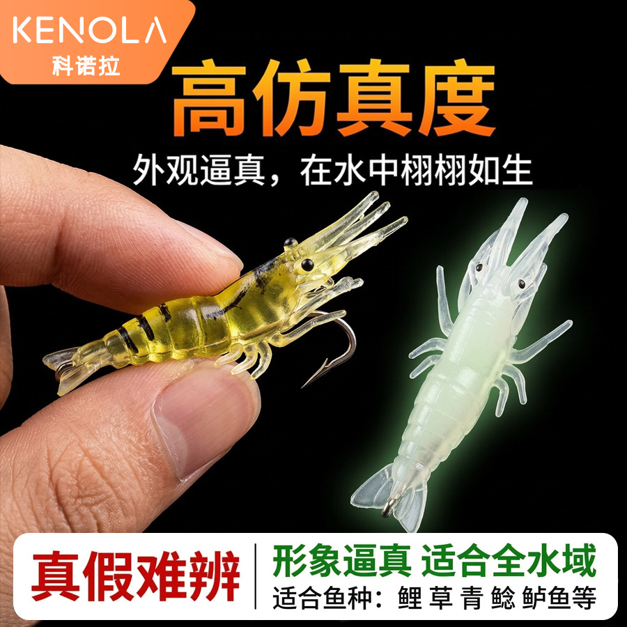 科诺拉路亚假饵小草虾路亚饵假虾米仿真虾夜光软体假饵带鱼钩虾