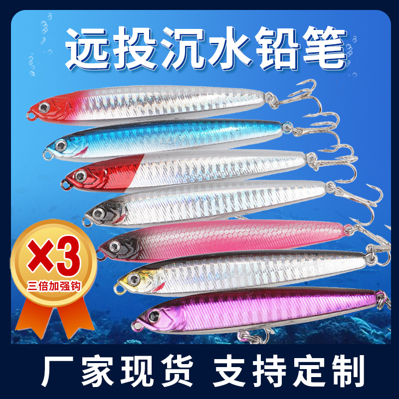 Pabrik dalam stok stok panjang rendam pensil Luya umpan pelat besi 10-24g diperkuat tiga kait umpan keras umpan palsu grosir