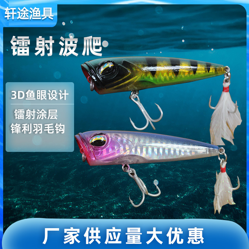Umpan palsu Luya 80mm14.5g, umpan mengambang bionik laser, gelombang mendaki, kait bulu, gelombang mendaki, plastik simulasi