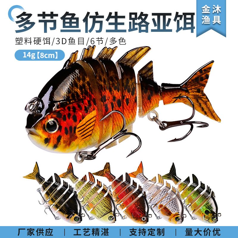 Stok tersedia 8cm subbait jalan 6 bagian multi-bagian ikan 14g umpan palsu plastik umpan keras untuk makan umpan
