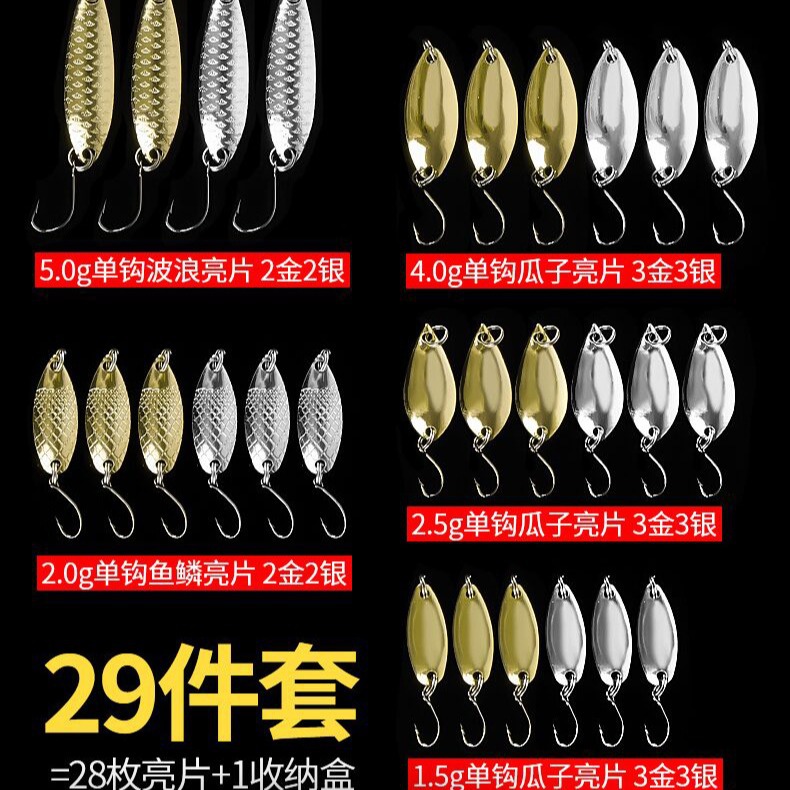 Set umpan palsu, payet mulut kuda, setelan payet logam 1.5-5g29, set sendok manik-manik garis putih, jenis umpan palsu