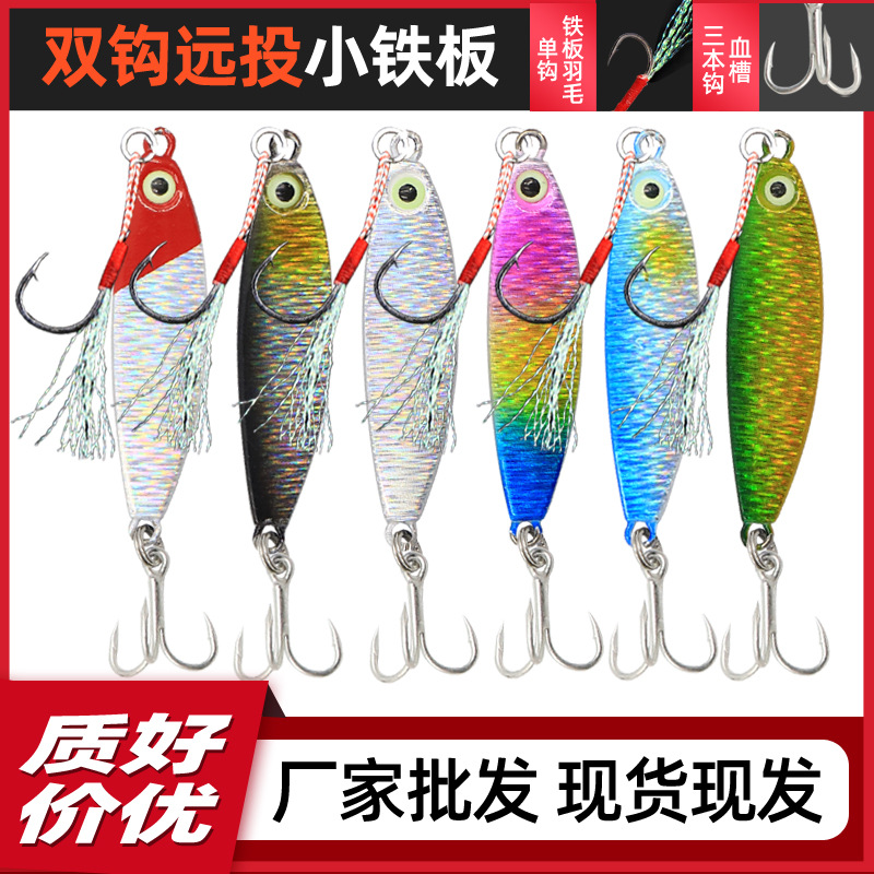 Pabrik grosir horse brand Luya umpan panjang Double Hook plat besi jatuh palsu umpan bank melempar payet miring mulut plat besi umpan