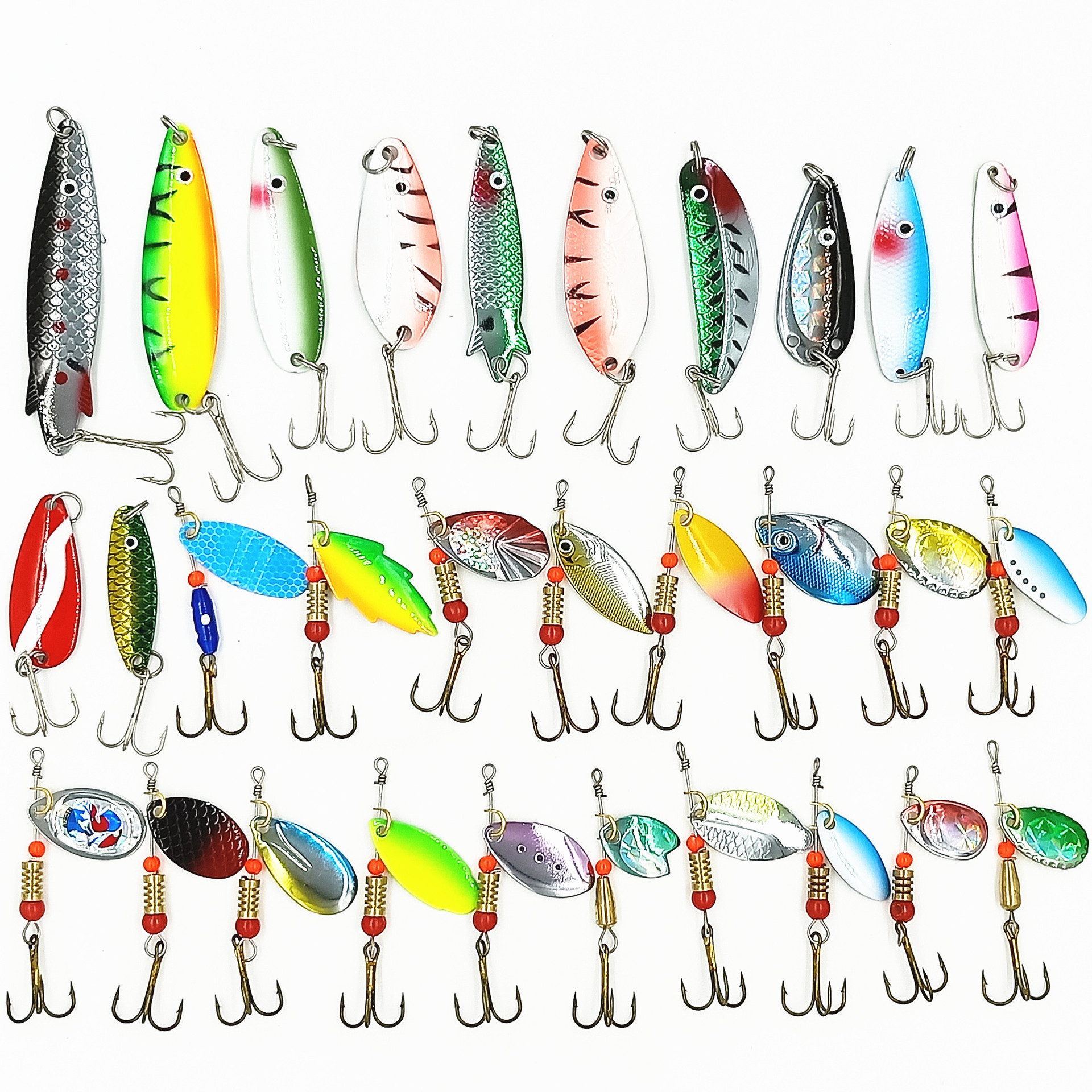 Set payet logam Putar komposit, 30 buah setelan payet logam Luya warna-warni, perlengkapan memancing bagian besi berbentuk ikan, kombinasi umpan palsu