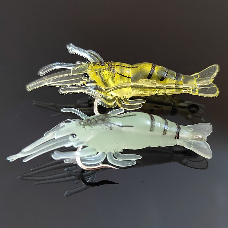 Umpan lembut udang rumput buatan dengan kait berduri umpan Luya nasi udang lembut bercahaya umpan palsu bionik dalam stok grosir