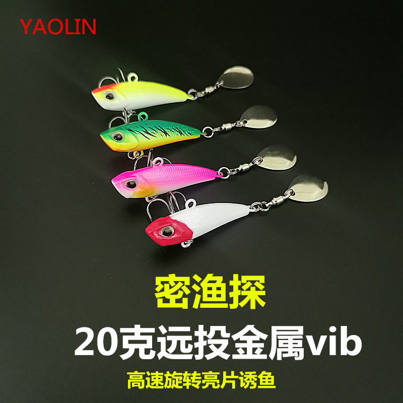 Miyu umpan pancing 20g, umpan pancing 20g lapisan renang penuh eksplorasi logam vib dengan payet berputar umpan palsu manik-manik bass