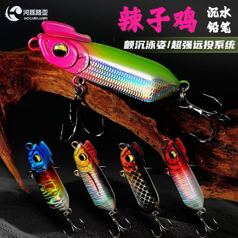 Umpan pensil Luya ayam pedas, umpan palsu Luya simulasi rendam pensil ultra panjang cor lambat tenggelam mulut miring ikan Mandarin