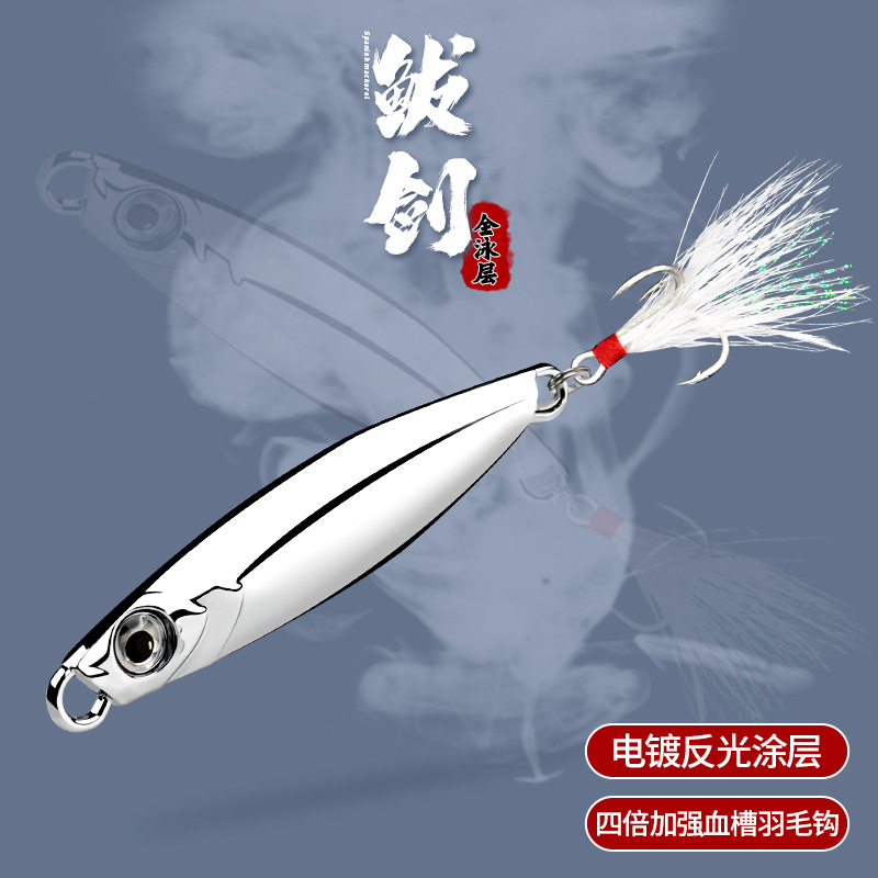 飘落蓝色刀远投小铁板路亚饵远投小胖子铁板海钓鲈鱼翘嘴仿生假饵