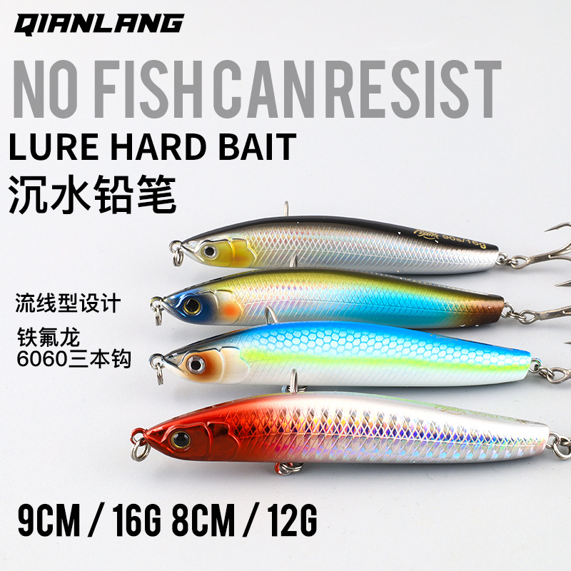 Yuyang umpan palsu Luya pensil, umpan palsu tembakan panjang manik-manik, umpan bass laut, umpan pembunuh khusus, umpan wastafel 12G 16g