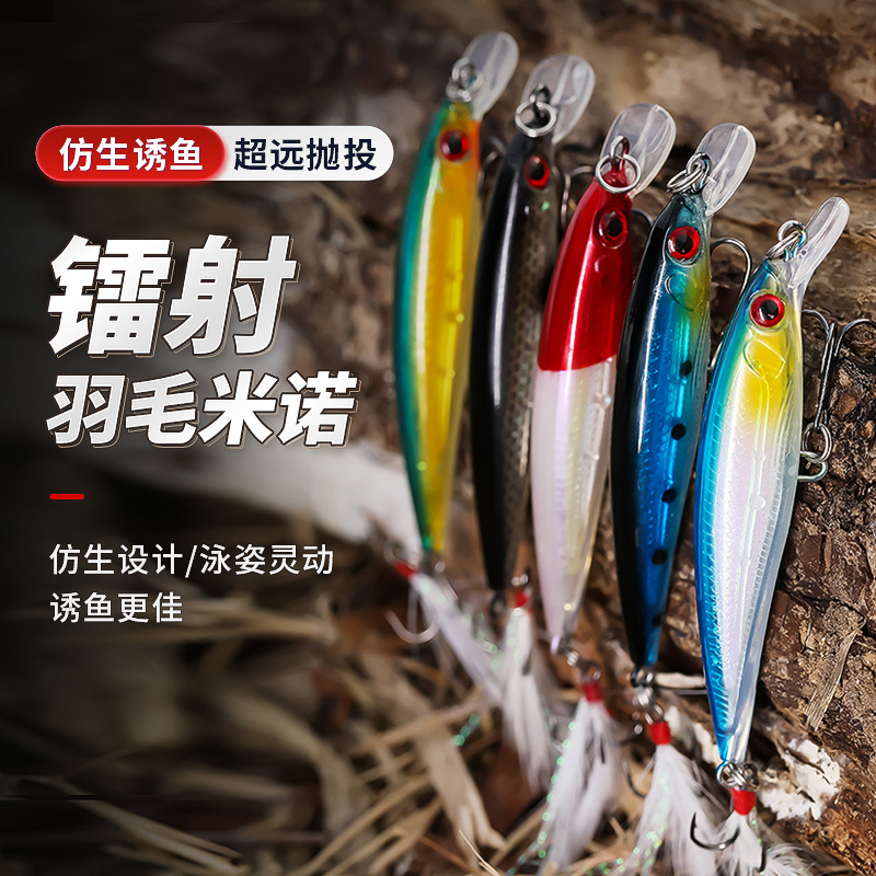 Luya umpan Mino 8cm 6g, long shot lambat tenggelam umpan bass palsu salmon manik-manik lampu air laut lintas batas pasokan perdagangan asing