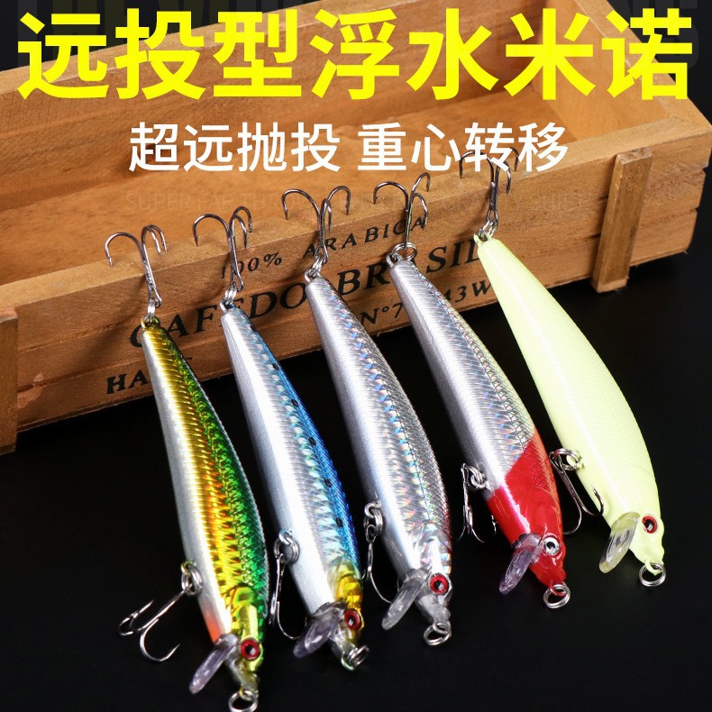 Luya umpan mengambang Mino umpan palsu tembakan panjang permukaan air manik-manik suara air tawar memancing manik-manik bass ikan Mandarin umpan palsu umpan keras setelan