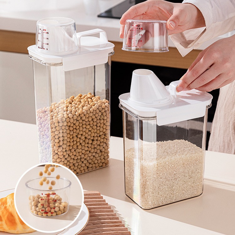 Toples penyimpan beras, toples dapur multifungsi, wadah penyimpanan gandum biji transparan portabel
