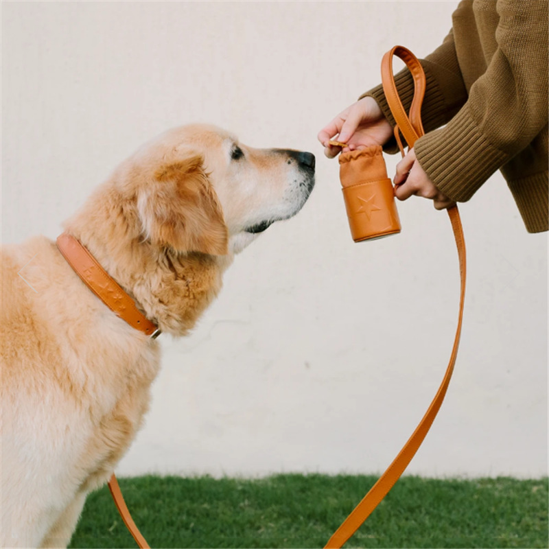 Tas makanan ringan portabel hewan peliharaan kulit kolor anjing perjalanan luar ruangan tas makanan anjing kunci tarik kantong sampah