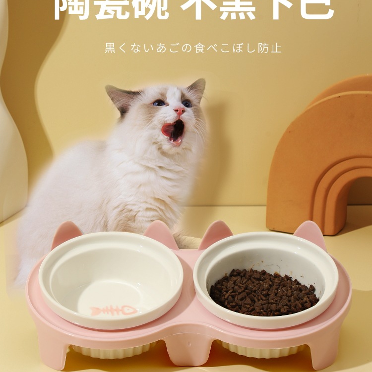 Mangkuk Kucing Keramik Mangkuk Makanan Kucing Mangkuk Nasi Mangkuk Ganda Mangkuk Anjing Mulut Mangkuk Air Mangkuk Air untuk Melindungi Tulang Belakang Serviks