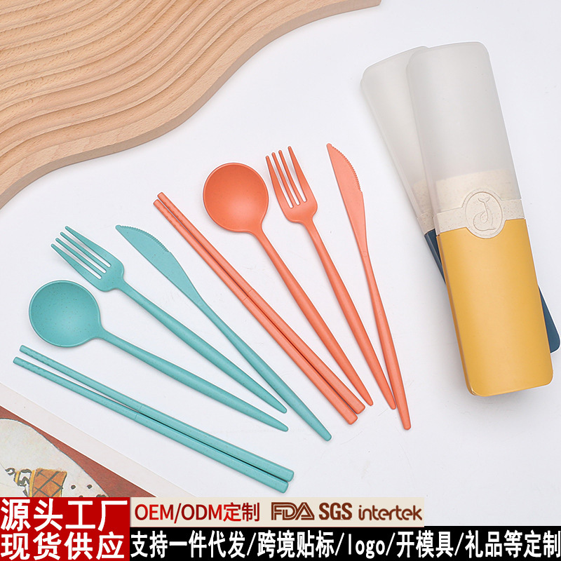 跨境小麦秸秆餐具套装亚马逊户外便携刀叉勺筷餐具户外勺叉礼品