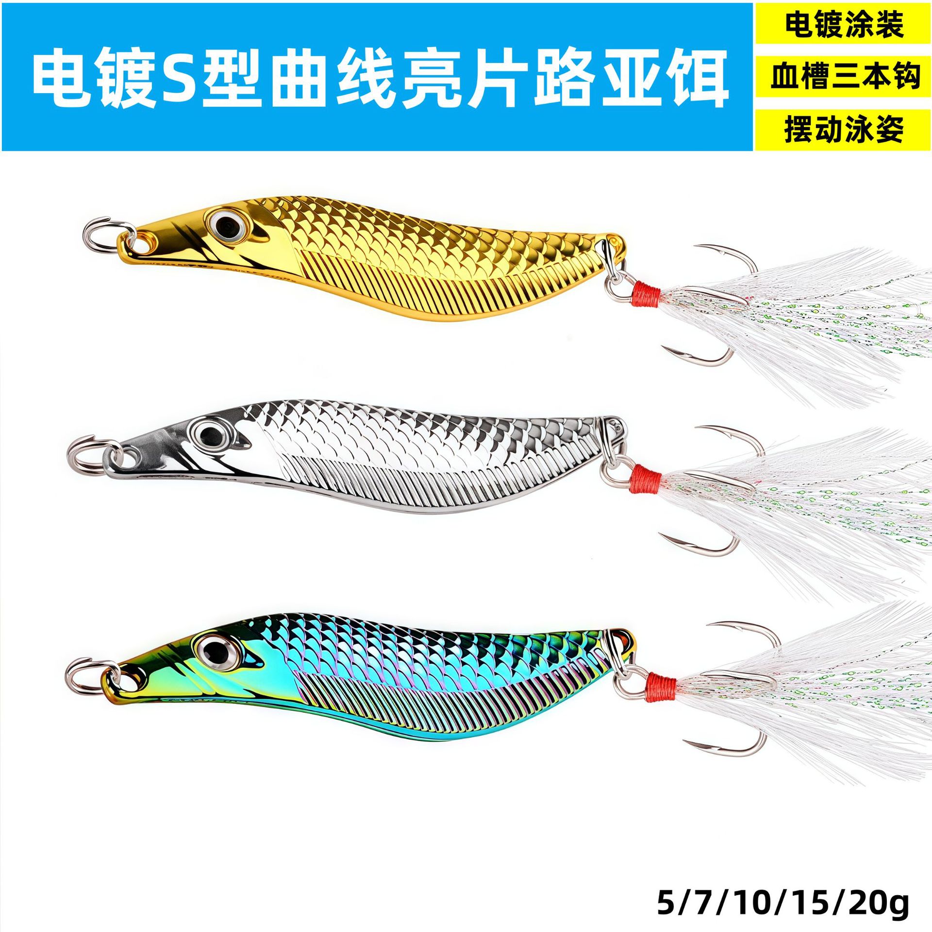 路亚金属亮片S型曲线水蛭路亚饵飘落远投翘嘴鲈鱼铁板饵血槽钩