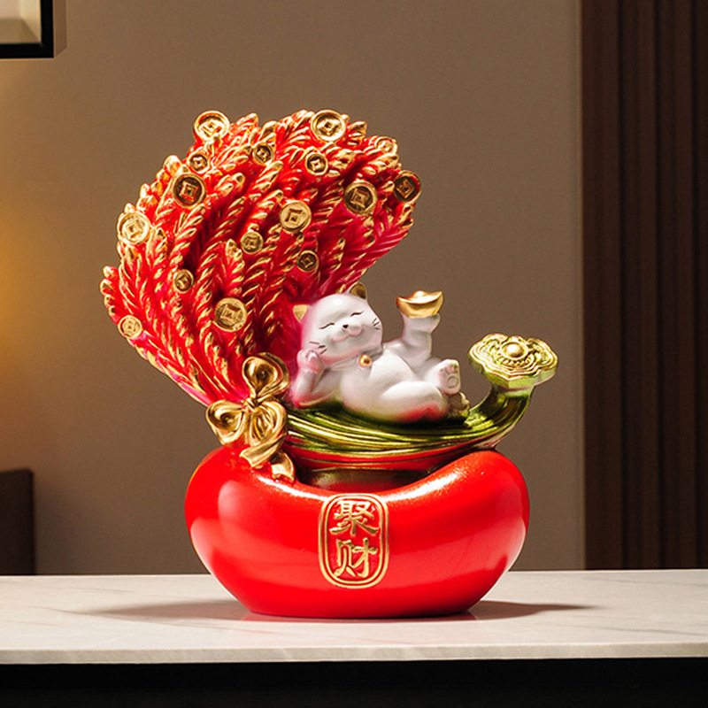 Barley Gaya Tiongkok Baru Kucing Keberuntungan Kucing Ingot Jucai Dekorasi Ruang Tamu Meja Depan Hadiah Pembukaan Toko Toko