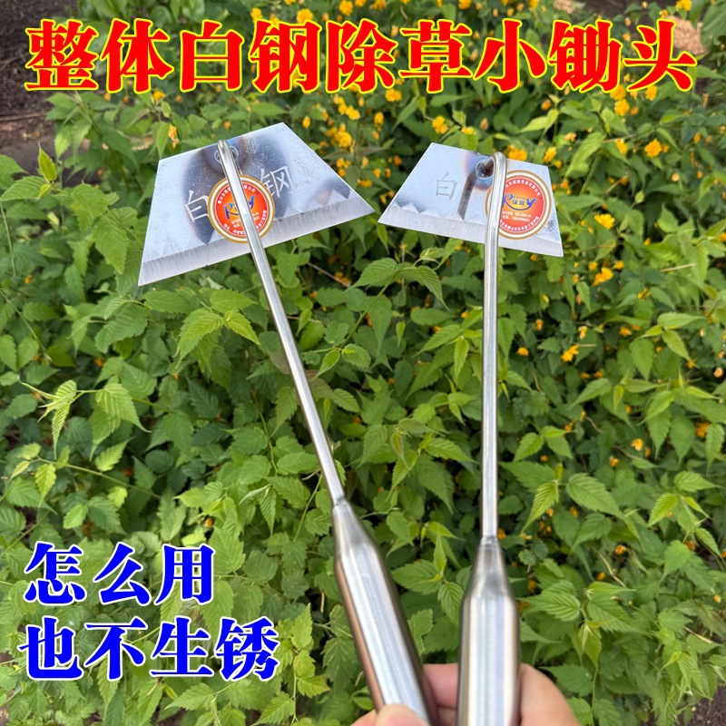 Cangkul baja putih rumah tangga, cangkul khusus luar ruangan untuk pembukaan tanah dan penyiangan, pembuatan tanah dan melonggarkan cangkul pertanian, alat penyiangan ringan
