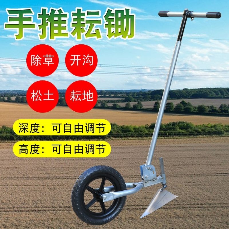 Alat penyiangan rumput beroda baru ditingkatkan dengan mendorong baja mangan tanah liat yang longgar